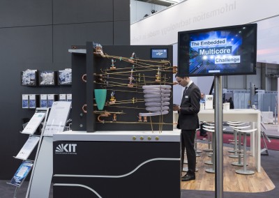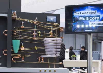 At CeBIT 2016, emmtrix Technologies presented in cooperation with the Karlsruhe Institute of Technology (KIT) the emmtrix Multicore Coaster. The Multicore Coaster is a ball run that demonstrates and visualizes the complexity of parallel programming. It consists of four parallel rails that represent four cores of a quad-core processor. It shows the complexity of following the individual balls through the whole sculpture. Software developers face the same complexity when programming multicore processors.