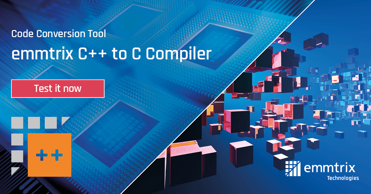 emmtrix is proud to present its latest code conversion tool at embedded world 2023 in hall 4, 4-370: emmtrix C++ to C Compiler.