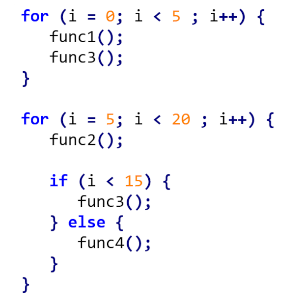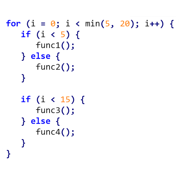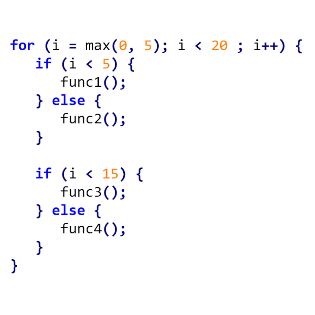 While this can be done in a single transformation, it’s always better to implement it using a combination of already tested functionality from our framework. This can be achieved by starting with a simple split of the for-loop to cover two ranges as defined be the conditions: