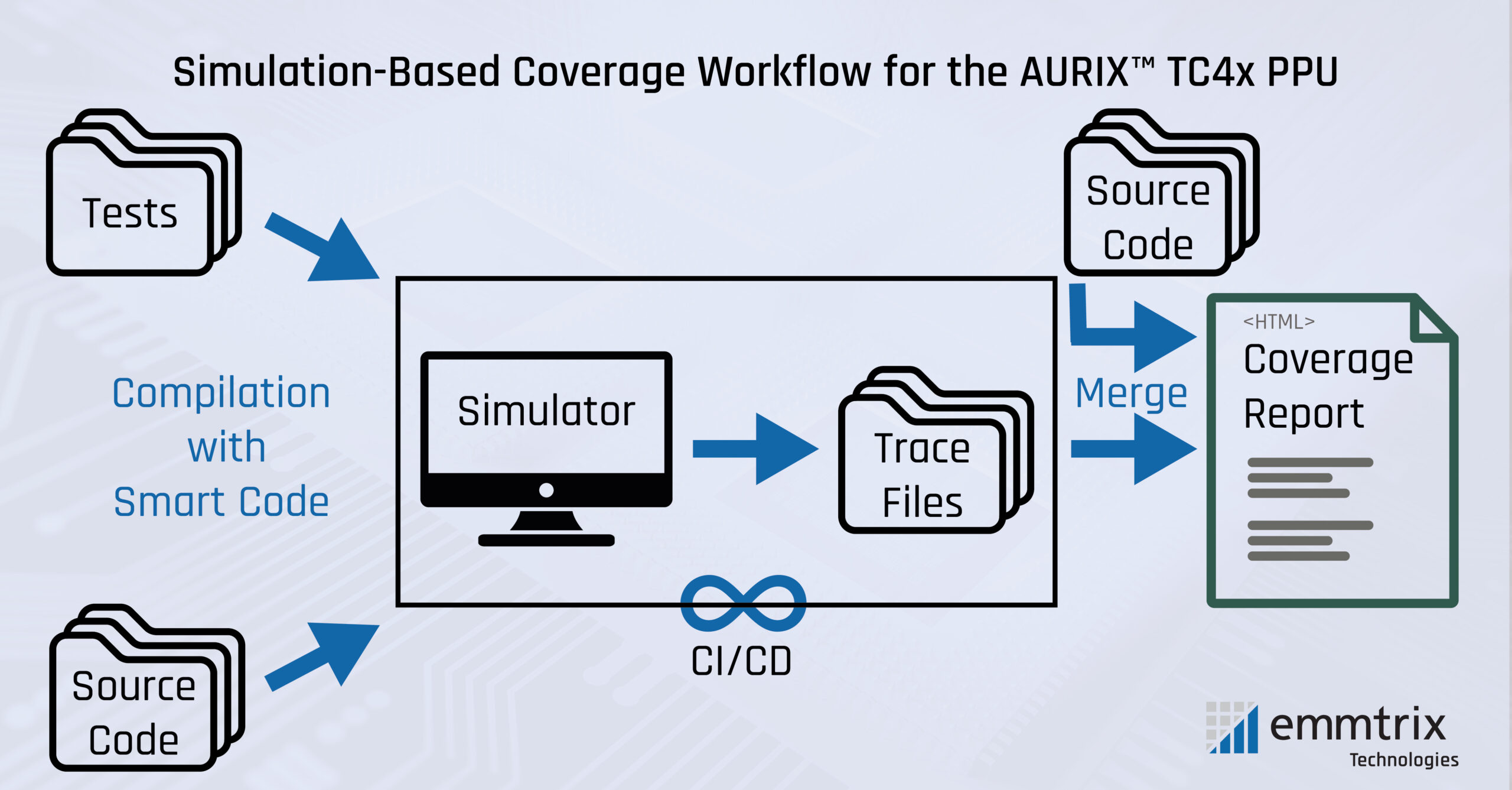 Together with TASKING, we implemented a simulation-based coverage workflow that runs PPU unit tests directly on the final machine code.