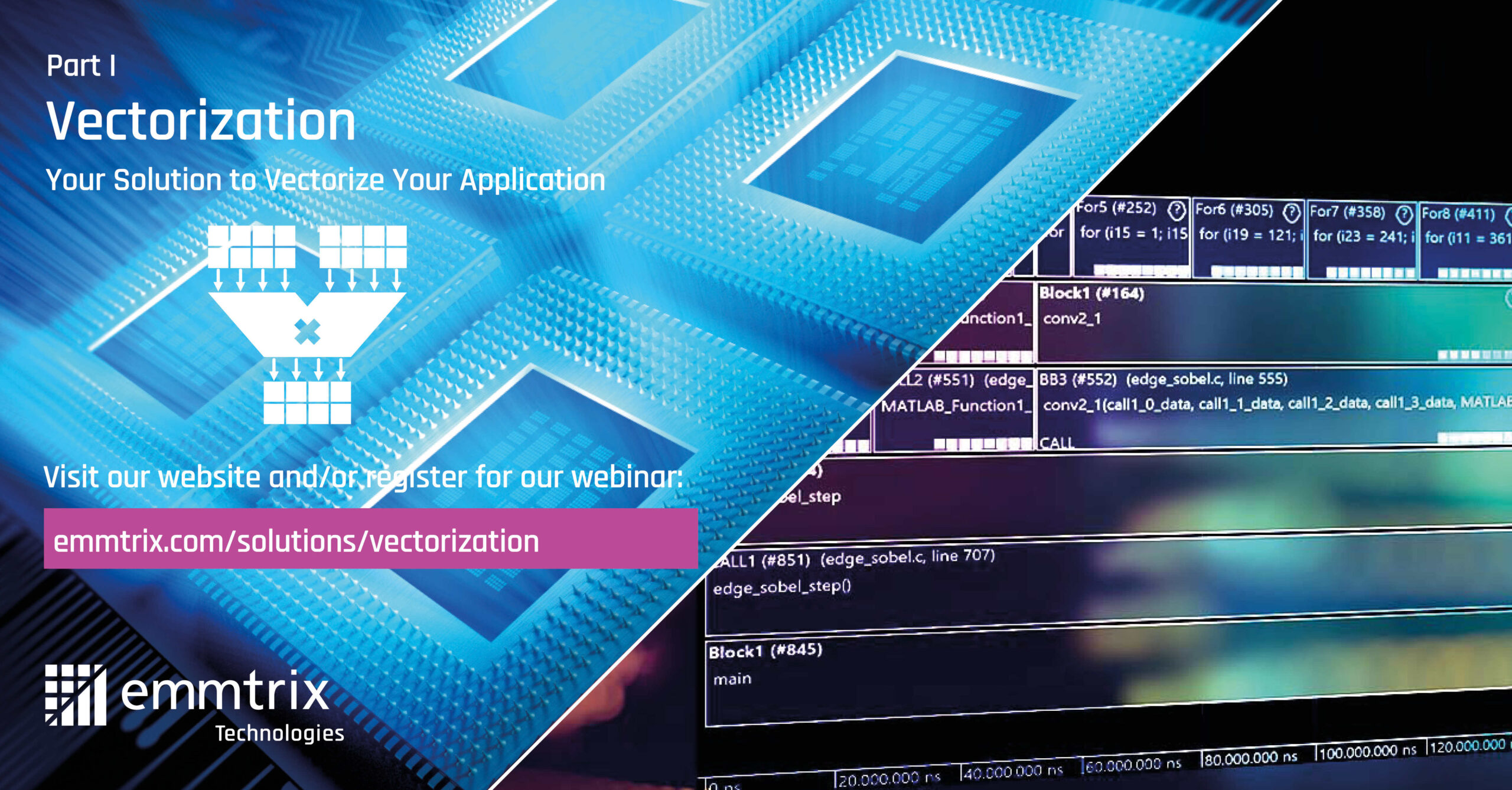 This post is the first part of a series on vectorization. In the upcoming weeks we will cover the peculiarities of the hardware and how to program these kinds of accelerators. We will also show you how emmtrix Parallel Studio can help you make use of the hardware efficiently and how your model-based workflow with Simulink can benefit from our vectorization solution.