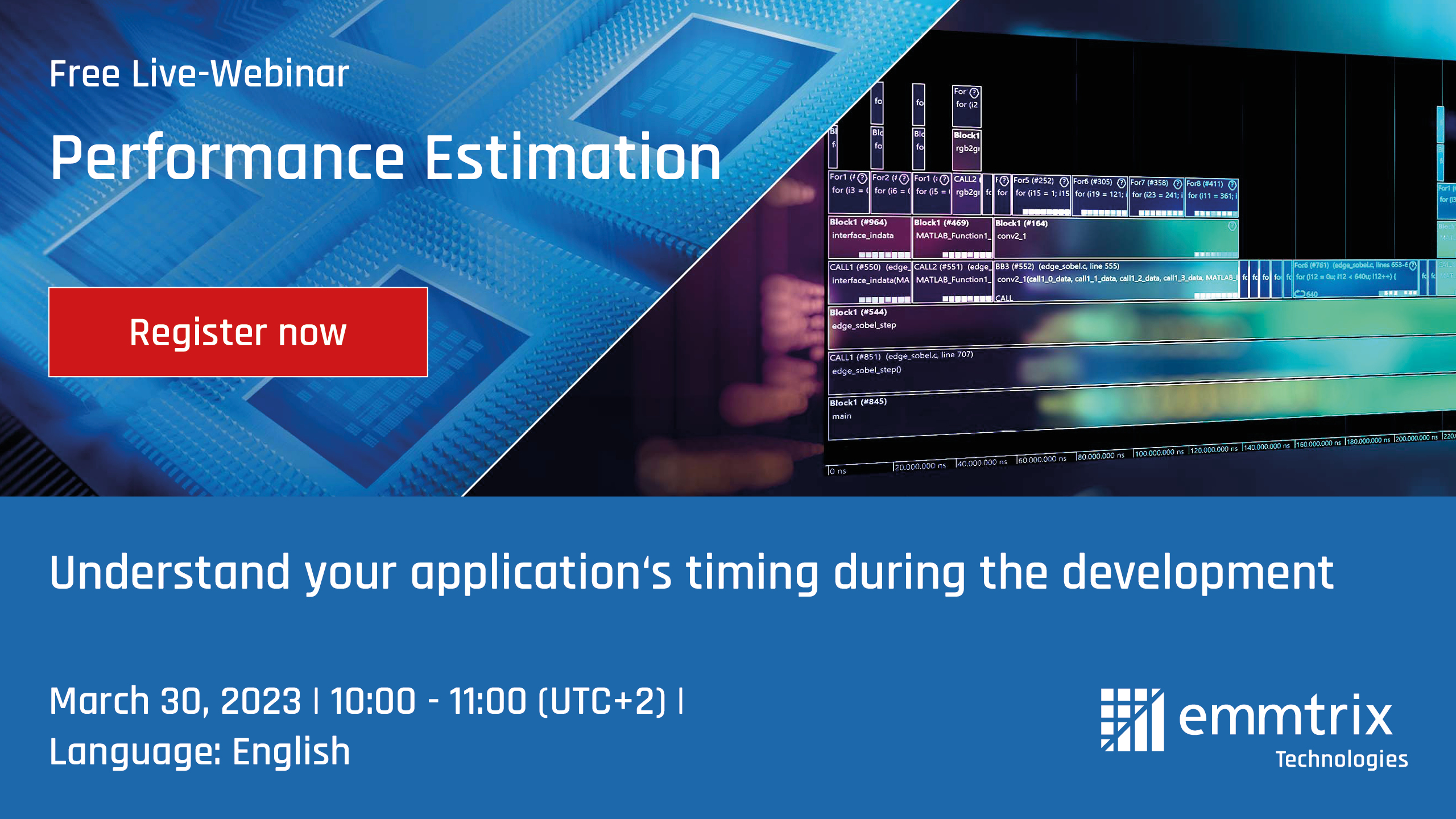If so, you need to attend our new live-webinar on static performance estimation. Here we will introduce the concept of using static code analysis to provide performance estimation of source code which can be used very early in the development to improve the timing awareness throughout the life of your project. The webinar will show different methods to increase the accuracy of the estimation and will discuss the advantages of not having to run the code on the hardware, but will also look at the limitations of this approach.